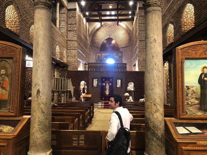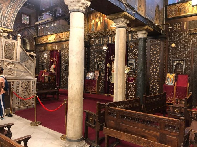 In Old Cairo, the Coptic area includes the Hanging Church, dating back to the seventh century. Also known as the Suspended Church or Al-Moallaqa, it earned its name because it was built on the southern gate of the Roman Fortress.